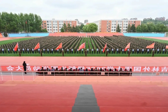 8月29日上午,吉林外国语大学举行2025级新生军训动员大会,恰逢中国人民抗日战争暨世界反法西斯战争胜利80周年,全体新生以迷彩为序,开启“大学第一课”。校党委副书记苗晶、空军航空大学航空作战勤务学院副大队长刘志超及相关人员出席大会。学生处副处长任雪艳主持大会。