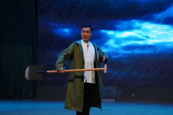 随后,吉林省戏曲剧院京剧团带来现代京剧《土地长歌》,该作品以东北黑土地为背景,讲述了农民牛喜田坚守耕地、带领村民科学致富的动人故事。剧中“护苗抗灾”“拒征守田”等激烈的戏剧冲突,生动展现了农民与土地血脉相连的情感,深刻诠释了“谁来种地”的时代命题。