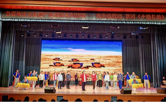 11月25日、26日,吉林省历史文化遗产进校园系列活动走进吉林外国语大学,带来大型原创现代京剧《土地长歌》。同时,查干湖鱼皮制作技艺、人参香非遗制作技艺、白氏面塑等一批非遗项目也在活动现场惊艳亮相,让校园成为传承吉林文脉、弘扬中华优秀传统文化的生动课堂。