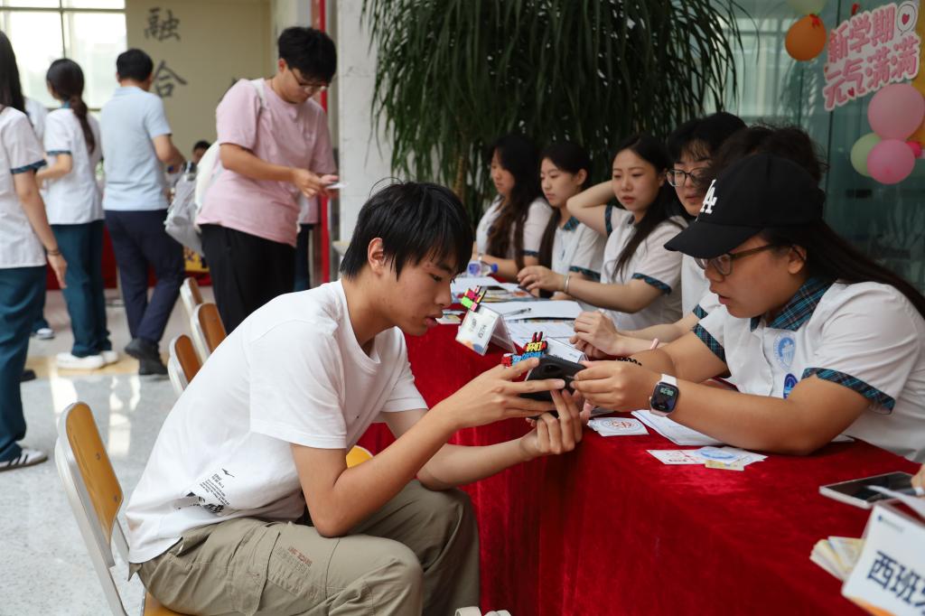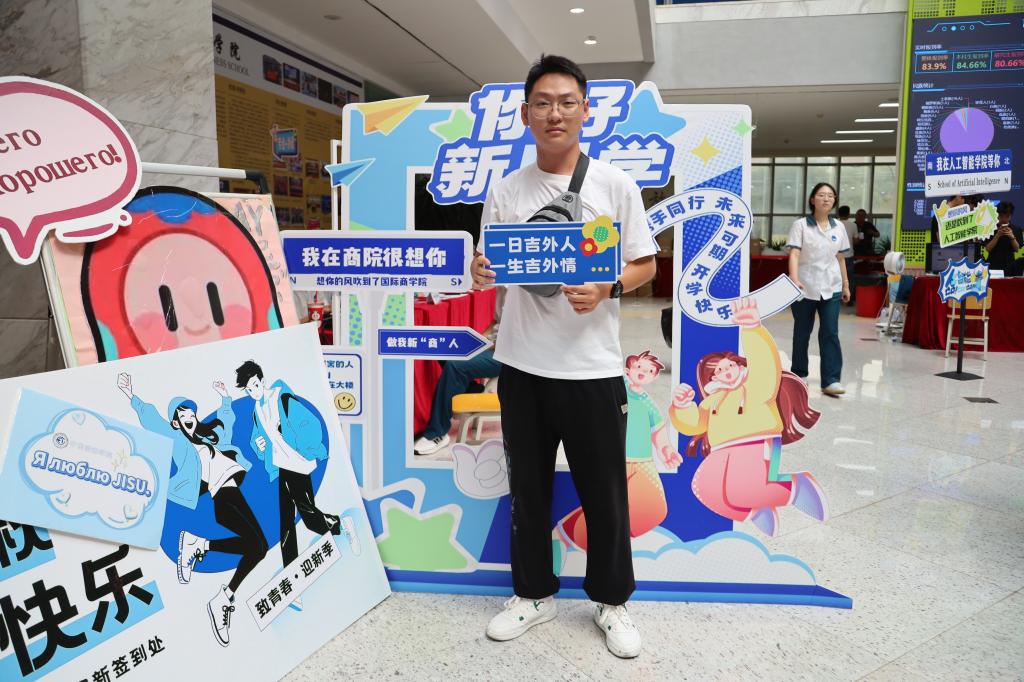 西方语学院德语(中外合作办学)专业的孙楠杰说:“初入大学校园,一切都带着新鲜与暖意。我既为能自主探索兴趣、结识来自五湖四海的朋友而兴奋,也在为适应大学的学习生活而紧张!这份‘既期待又忐忑’的心情,正是开启大学生活最特别的印记。”