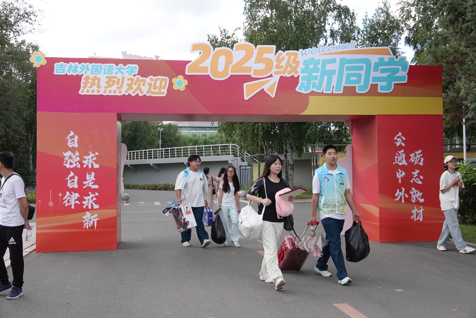 迎新工作是给新生的温暖浸润,也是学校文化和精神的传递。大二、大三学子广泛参与迎新,已成为吉外的特色传统。校团委与各学院组建 “迎新志愿者” 队伍,经培训后协助新生搬行李、领物品、办理寝室入住,让新生感受吉外温暖。各学院教师也在报到现场,为新生解答专业学习、实习实践、就业方向等疑问。