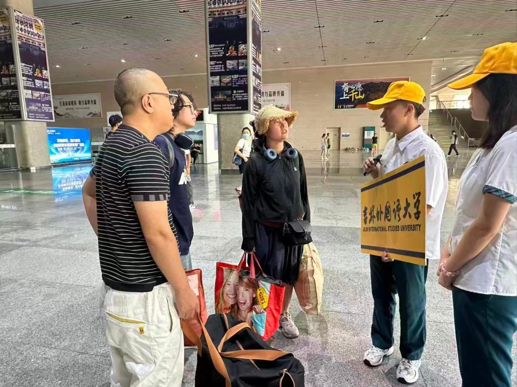 为确保新生顺利报到,学校组建了车站引导志愿者队伍,20余名学生志愿者在教师带领下,守候在长春火车站北站和西站,为新生及家长提供出行引导。