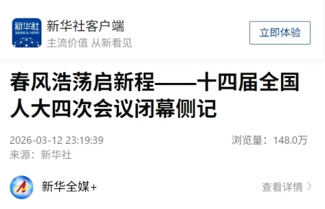 3月12日,十四届全国人大四次会议胜利闭幕