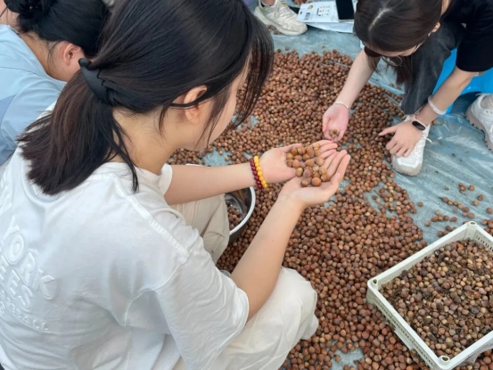 陈琳帮助脱贫户打包榛子