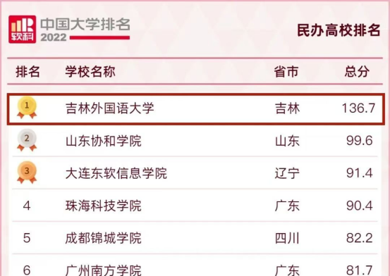 在软科中国民办高校总榜排名中