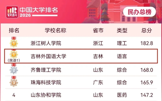 “2026中国民办语言类高校排名”第一